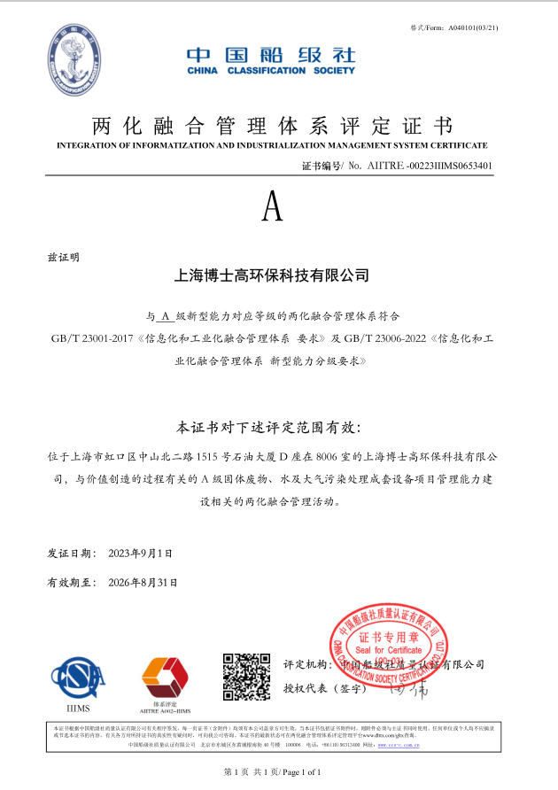 上海博士高环保集团(BSG-Environ Group)始于1998年,由土木工程、环境工程等学科享誉全球的同济大学发起成立。公司第一任董事长是中国著名环境工程专家、同济大学前校长高廷耀教授。博士高集团经过26年的发展,已成为中国在工业废物处理和资源化利用领域领先的整体技术解决方案和成套设备提供商。